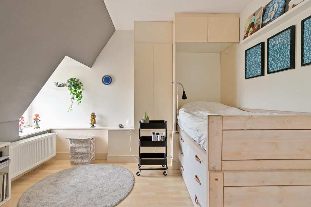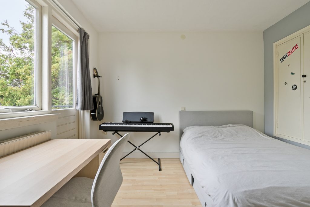 Slaapkamer 1 is aan de voorzijde gelegen. De hoofdslaapkamer bevindt zich aan de achterzijde en heeft openslaande deuren naar het plat dak van de uitbouw. De 3e slaapkamer op deze verdieping is wederom ruim van afmeting en aan de achterzijde gelegen. Alle kamers zijn afgewerkt met stucwerk en een laminaatvloer en genieten van volop natuurlijke lichtinval.
