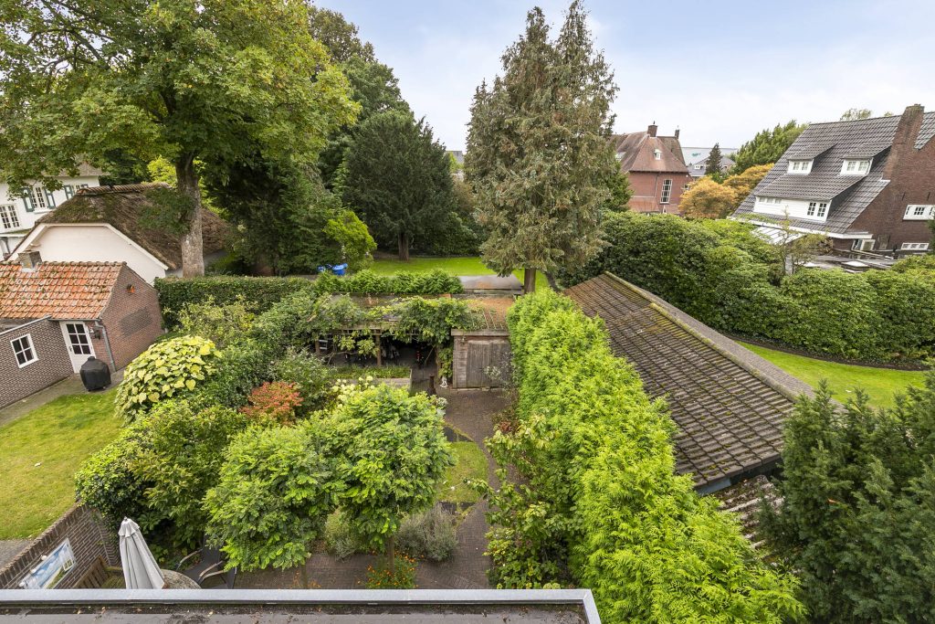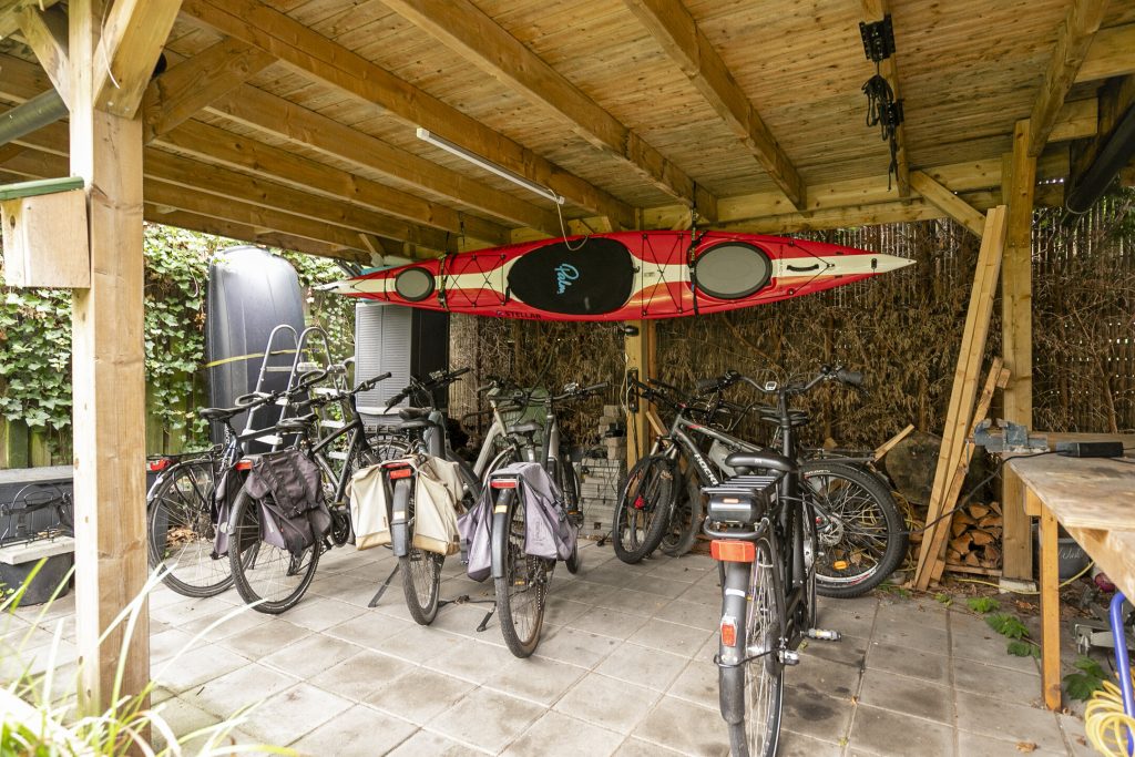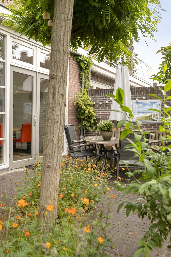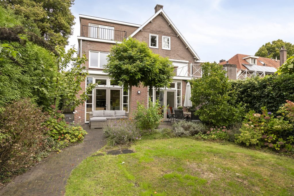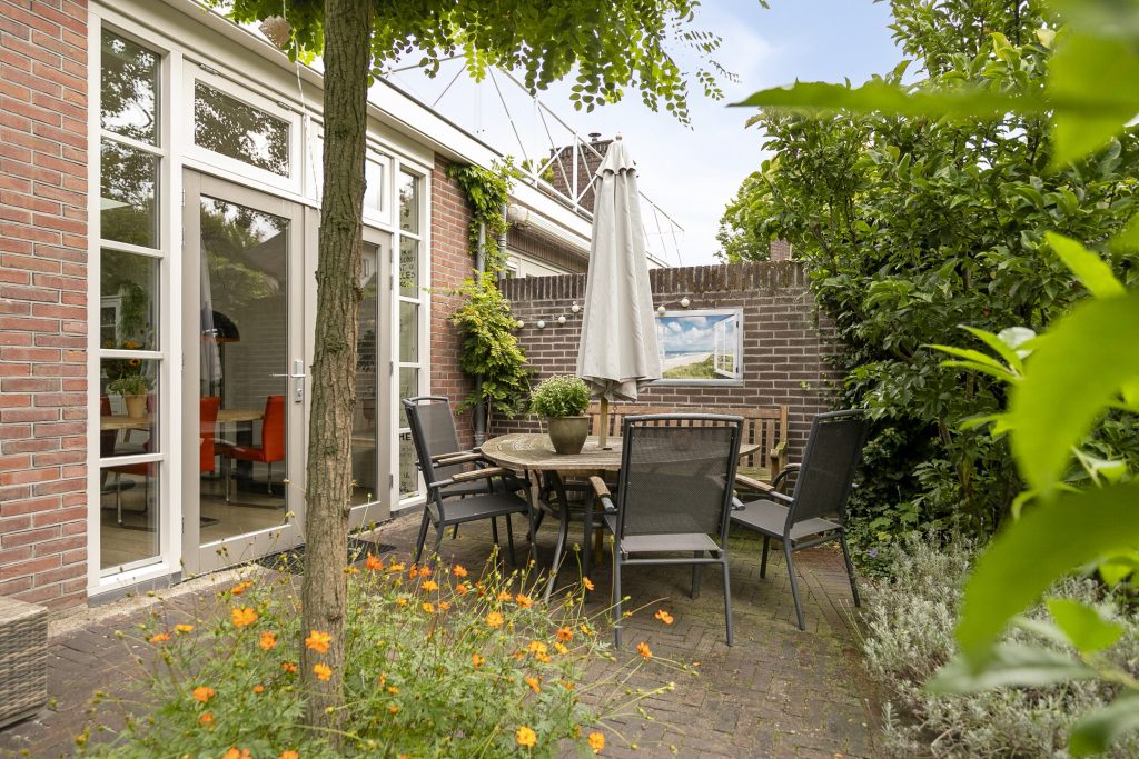 De achtertuin is gelegen op het zuiden en is een “groene oase”. De tuin biedt privacy en heeft een bestraat terras aan de woning, gazon, borders en een tweede overdekt terras annex opslag, achter in de tuin. Hier bevindt zich eveneens de houten tuinberging. Naast de woning is een achterom met poort gelegen naar de oprit.