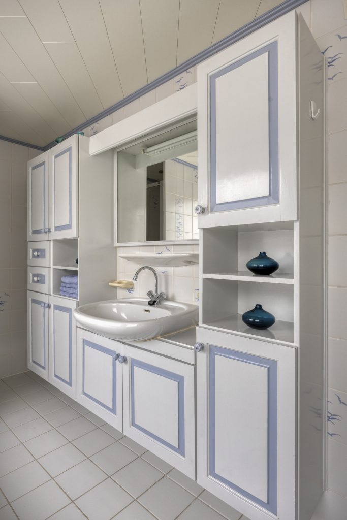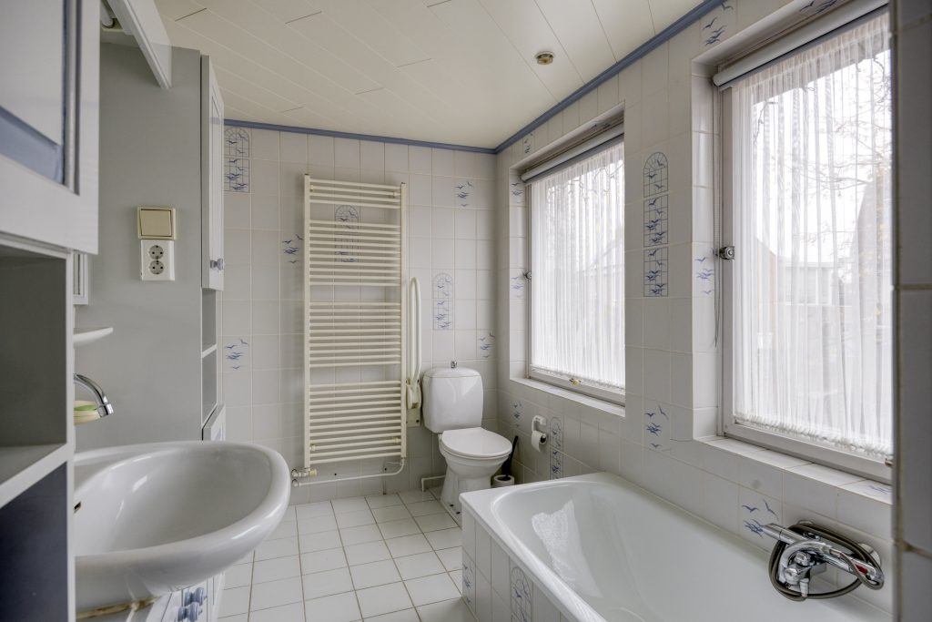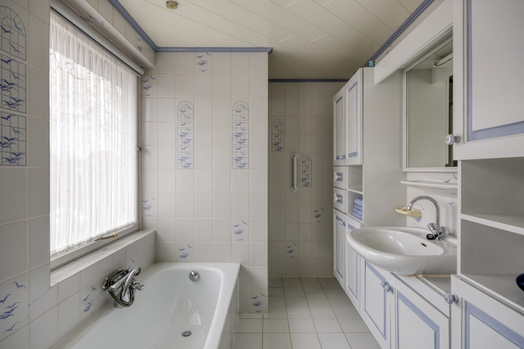 Op de eerste verdieping bevinden zich drie slaapkamers, elk met een eigen inbouwkast. Eén van deze kamers wordt momenteel gebruikt als praktische wasruimte. De badkamer is compleet uitgerust met een staand toilet, ligbad, douchecabine, wastafel in meubel, vloerverwarming en designradiator, maar verdient een eigentijdse update. Juist hier ligt een mooie kans om een comfortabele badkamer te creëren die volledig aansluit bij uw woonwensen.