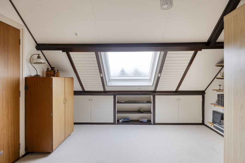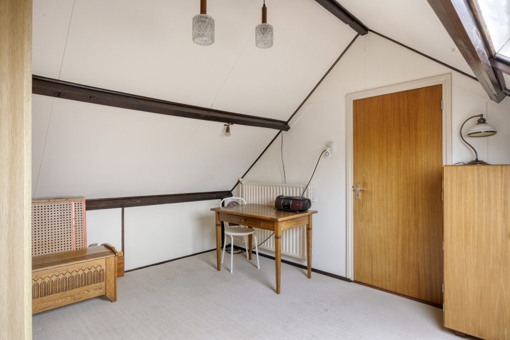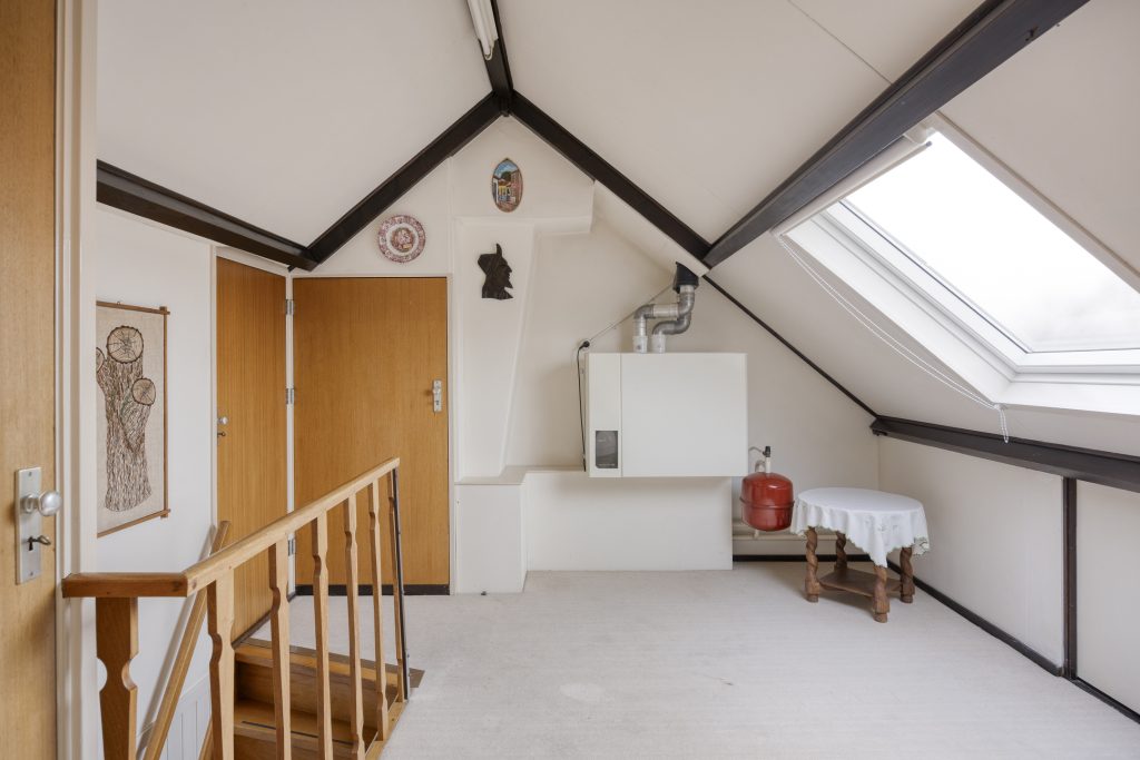 De tweede verdieping is een aangename verrassing. Op de voorzolder bevindt zich de opstelling van de cv-combiketel (merk Nefit, bouwjaar 2001) en dankzij de dakramen valt het licht rijkelijk naar binnen. De vierde slaapkamer is een fijne, rustige plek met knieschotten die zorgen voor extra bergruimte. Ideaal als logeerkamer, werkplek of hobbykamer.
