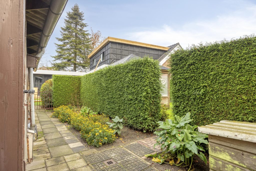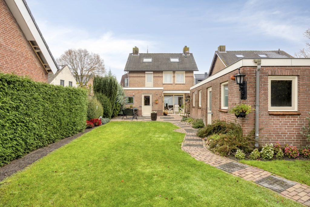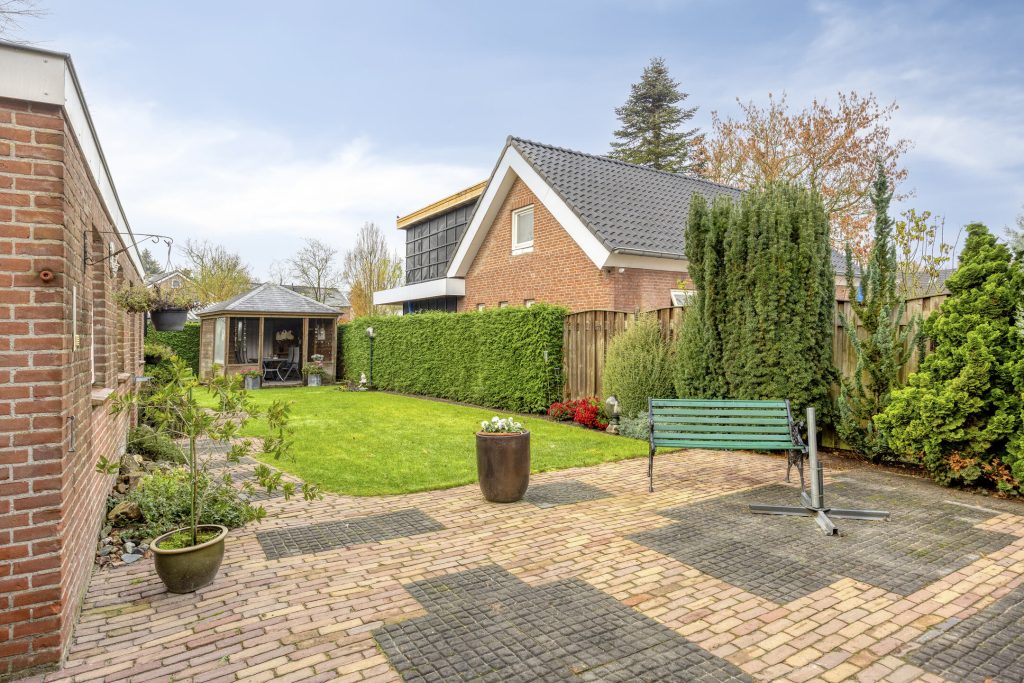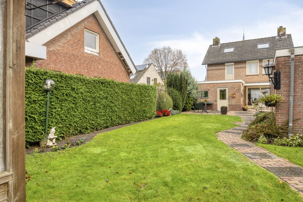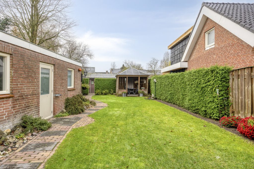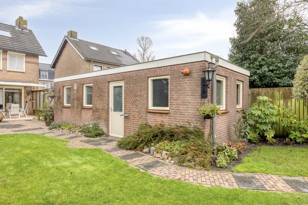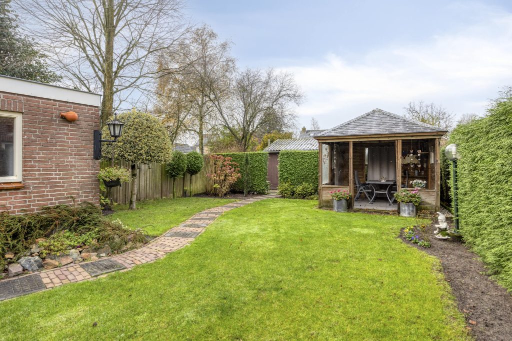 Een van de absolute pluspunten van deze woning is het royale, zeer diepe perceel. De fraai aangelegde tuin biedt volop privacy en voldoende ruimte voor ontspanning, tuinieren of hobby’s. Op elk moment van de dag is er een fijne plek in de zon te vinden, terwijl de terrasoverkapping uitnodigt om ook bij minder mooi weer van het buitenleven te genieten. De praktische bijgebouwen – waaronder een garage, tuinhuis en berging – maken het geheel compleet en bieden talloze mogelijkheden voor hobby’s en opslag. De vrijstaande stenen garage van ca. 30 m² is voorzien van keukenblokje en smeerput. Er is water en elektra aanwezig.