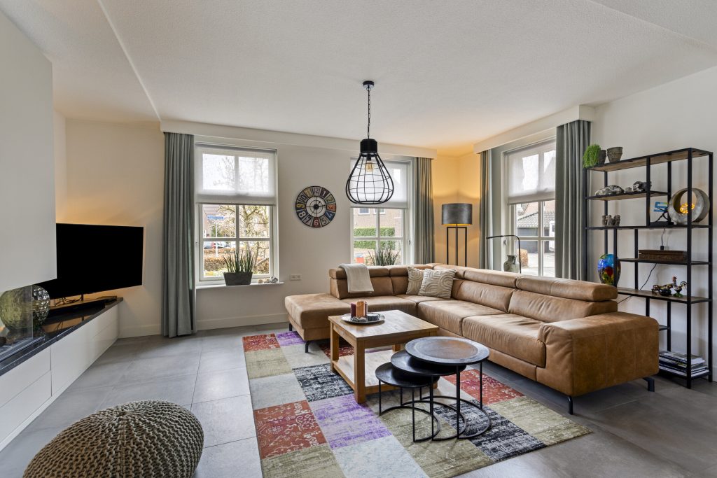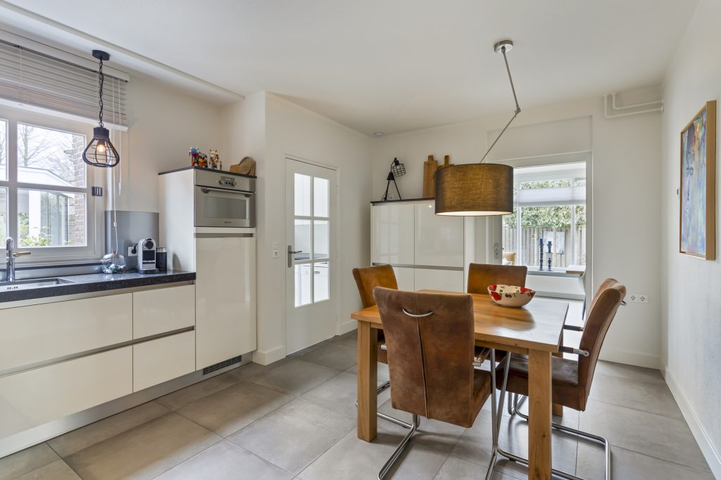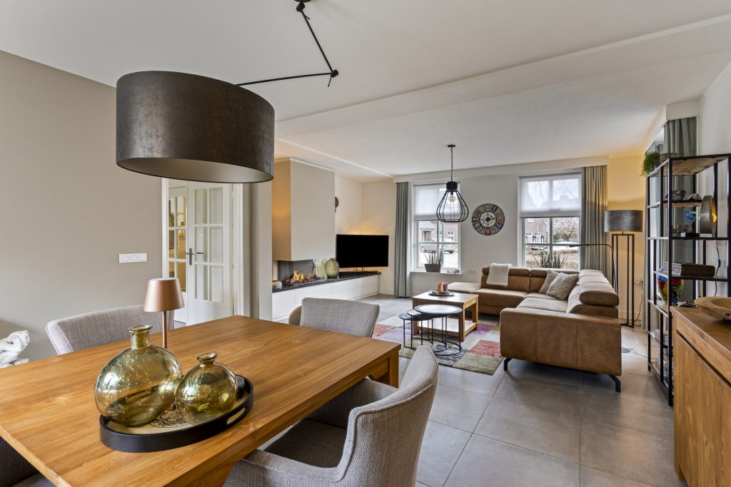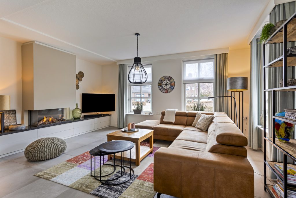 De living geniet van veel daglicht dankzij de geruite raampartijen. Het woonkamergedeelte is gesitueerd aan de voorzijde van de woning, hier geniet u van de gashaard en heeft u tevens een leuke uitkijk op de straatzijde. Aan de achterzijde van de living bevindt zich het zitgedeelte, van waaruit u dankzij openslaande tuindeuren toegang heeft tot de tuin van de woning.