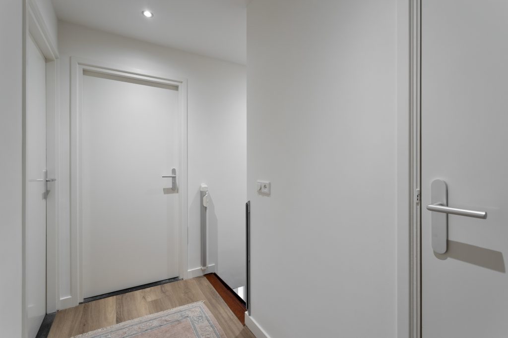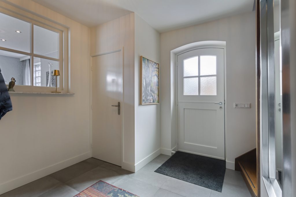 De entree is voorzien van een tegelvloer met vloerverwarming, doorgelegd over de gehele begane grond. Vanuit de entree heeft u toegang tot de toiletruimte met wandcloset en fonteintje, kelderruimte, trapopgang naar de eerste verdieping, woonkamer, keuken en tot slot de eetkamer. Tevens bevindt zich hier de in 2018 vernieuwde meterkast en de lucht/water-warmtepomp, keurig verwerkt in een kastopstelling.