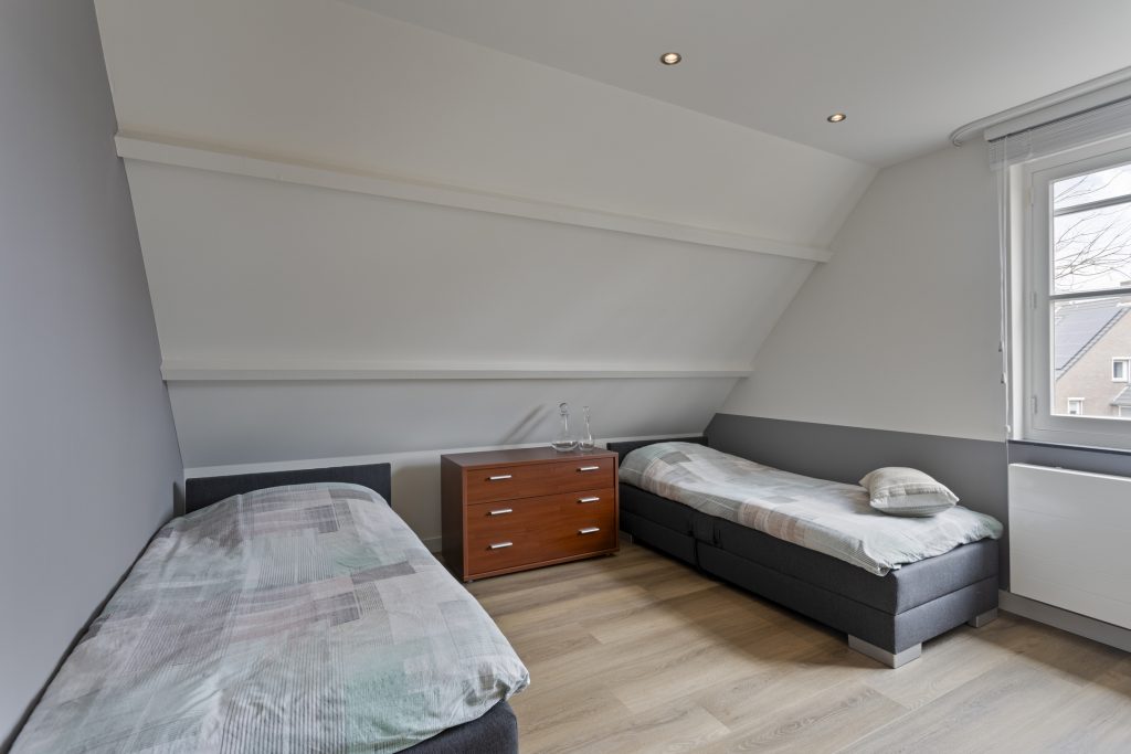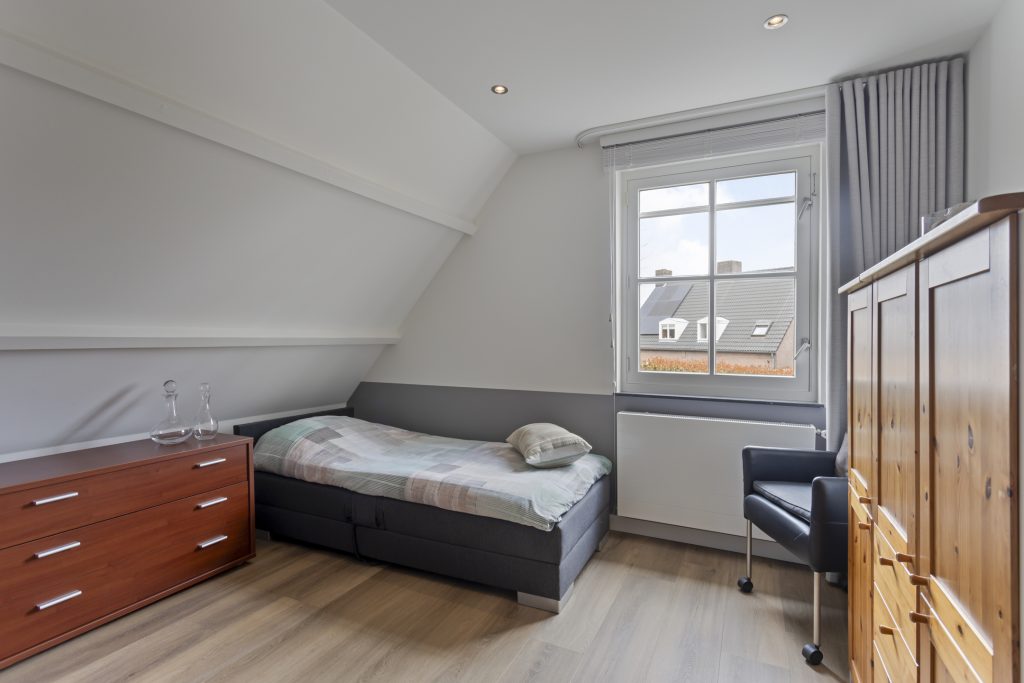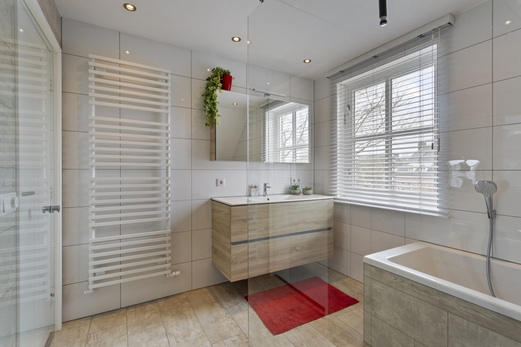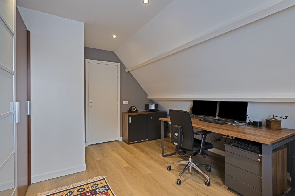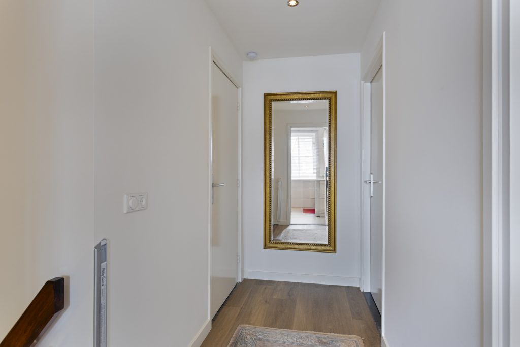 De overloop van de eerste verdieping is uitgerust met een pvc-vloer, tevens doorgelegd over de gehele verdieping met uitzondering van de badkamer. Deze verdieping is voorzien van drie slaapkamers. De masterbedroom beschikt over een kastenruimte en vanuit de tweede slaapkamer heeft u via de kastenruimte ook toegang tot de trapopgang naar de tweede verdieping. De volledig betegelde badkamer is vernieuwd in 2018 en bestaat uit een ligbad, wastafelmeubel, designradiator, wandcloset en zeer ruime inloopdouche met regendouche, losse handdouche, voorzien van een hardglazen douchewand met douchedeur. Daarnaast is de badkamer uitgerust met vloerverwarming en dimbare inbouwspots.