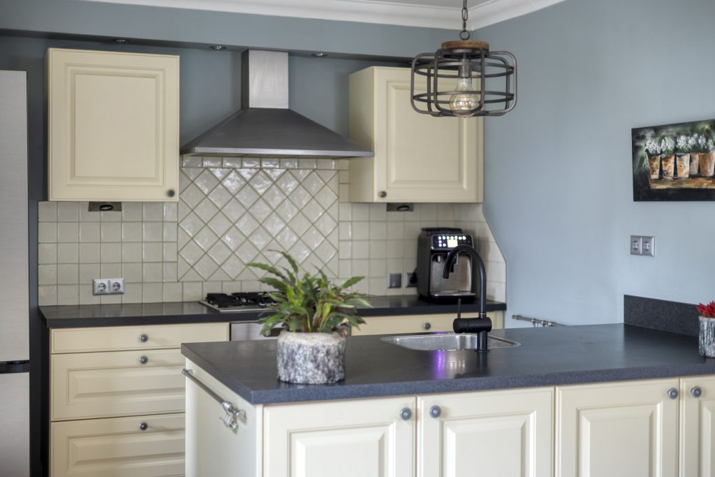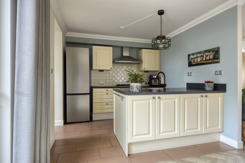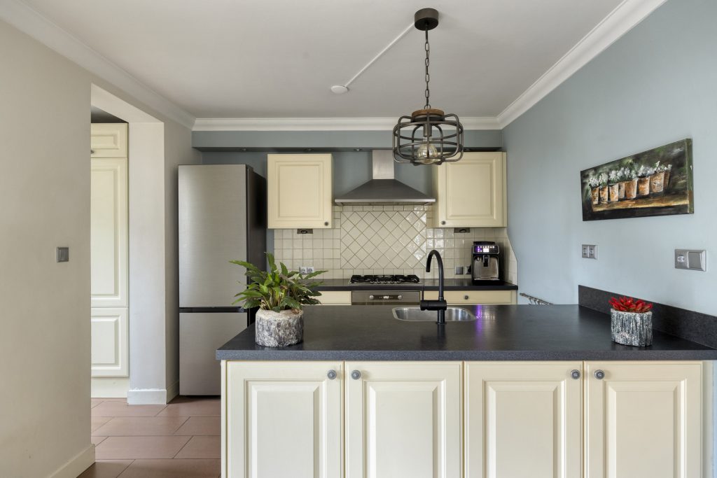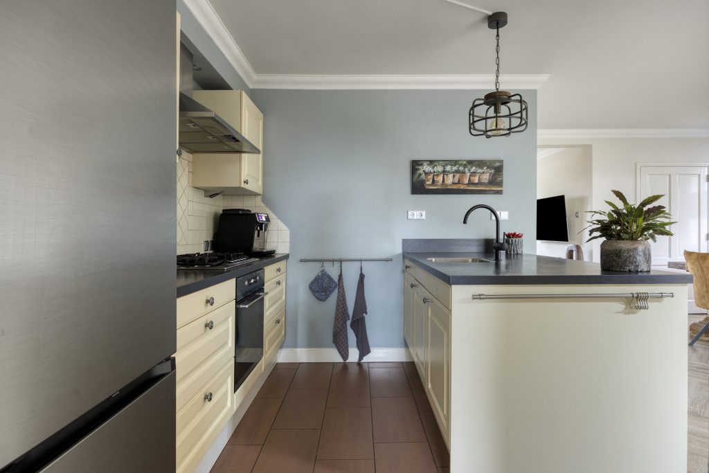 Aan het eetgedeelte is de open keuken gelegen die beschikt over een spoeleiland en wandopstelling. De keuken is voorzien van de volgende apparatuur: vaatwasser, 5-pits gaskookplaat met bakoven en afzuigkap en een spoelbak.