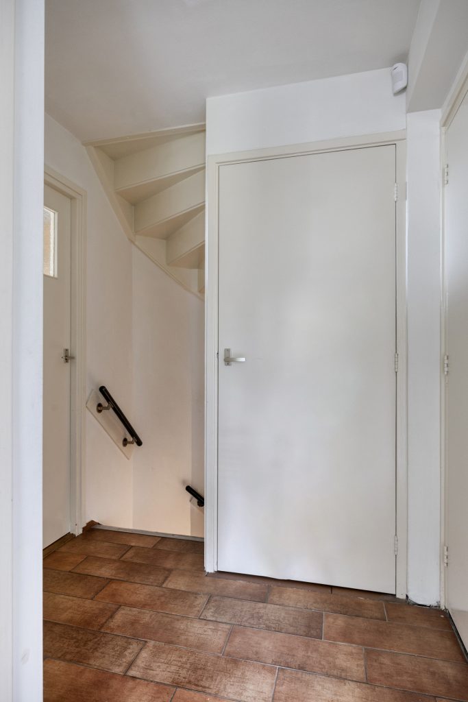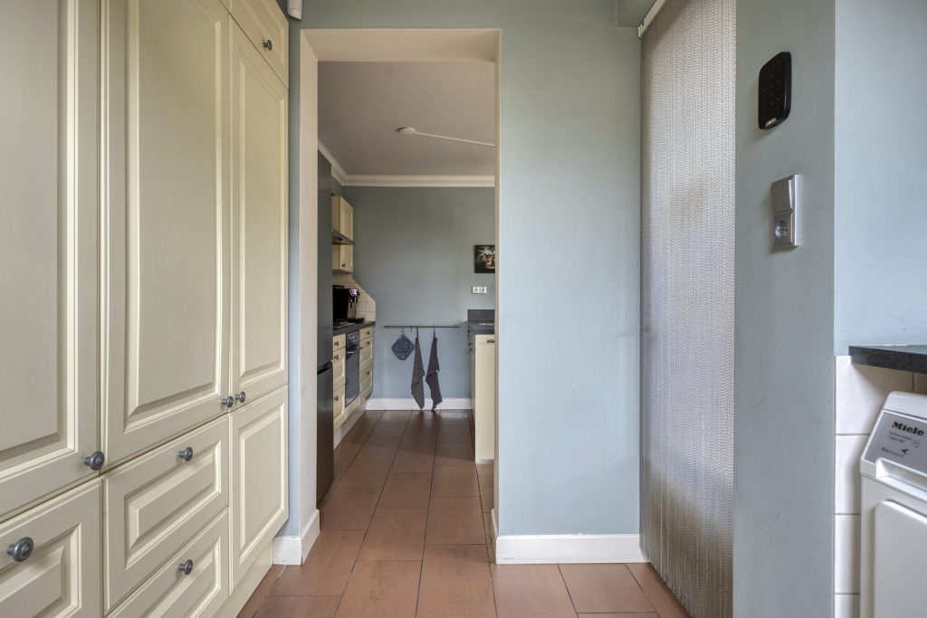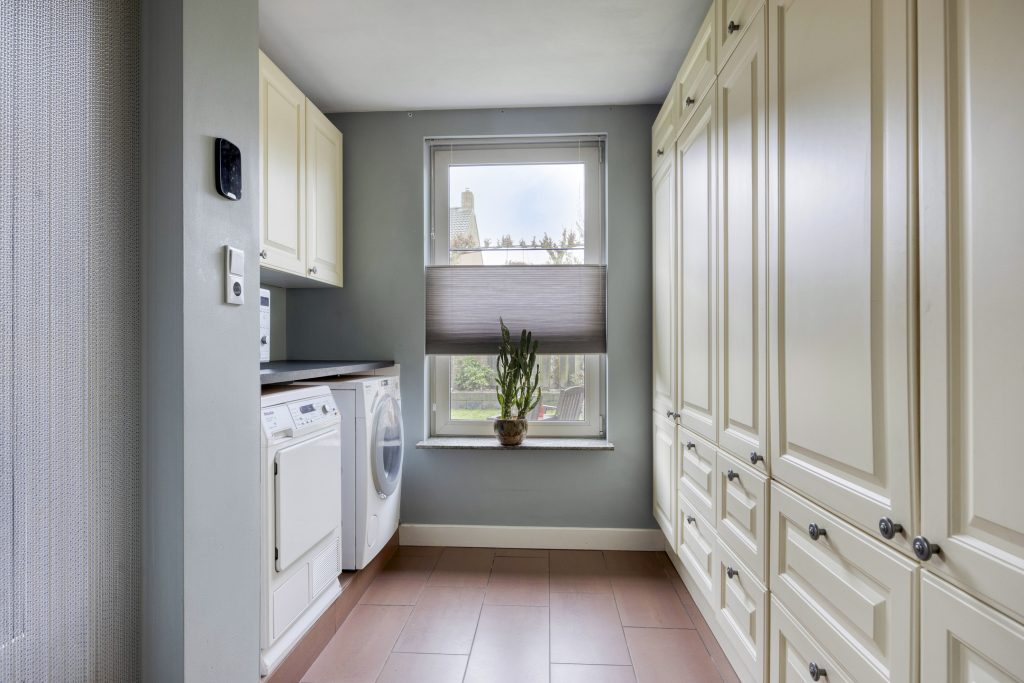 Aan de keuken is een praktische bijkeuken gelegen met een vaste kastenwand, witgoedaansluitingen en toegang tot het overdekte terras in de tuin.