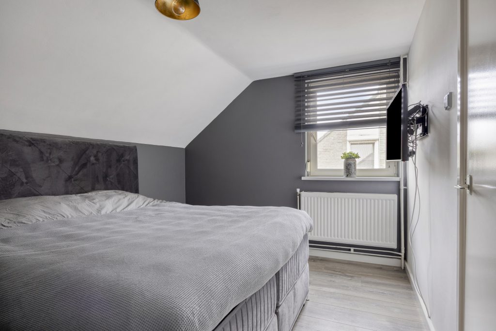 De 4 slaapkamers zijn allen ruim van afmeting en belegd met een laminaatvloer. De wanden en plafonds zijn voorzien van stucwerk. Nagenoeg de gehele 1e verdieping is voorzien van rolluiken.