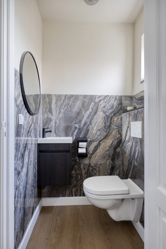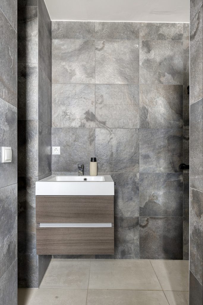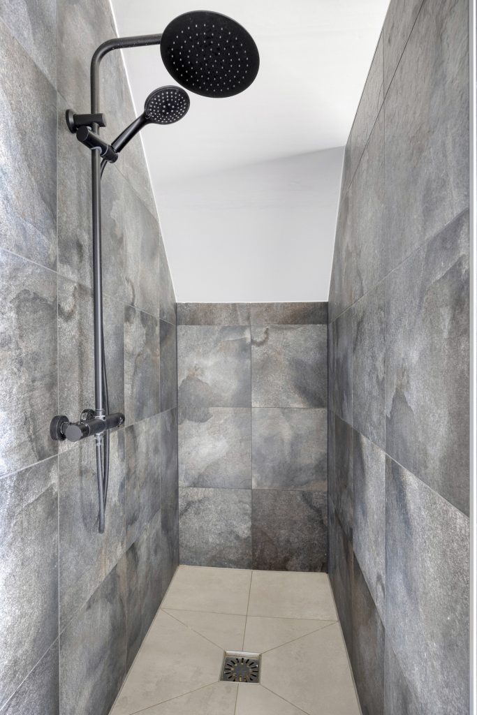De badkamer is in 2024 gemoderniseerd en beschikt over een inloopdouche, wastafelmeubel, hangend toilet en elektrische verwarmin met afstandsbediening.