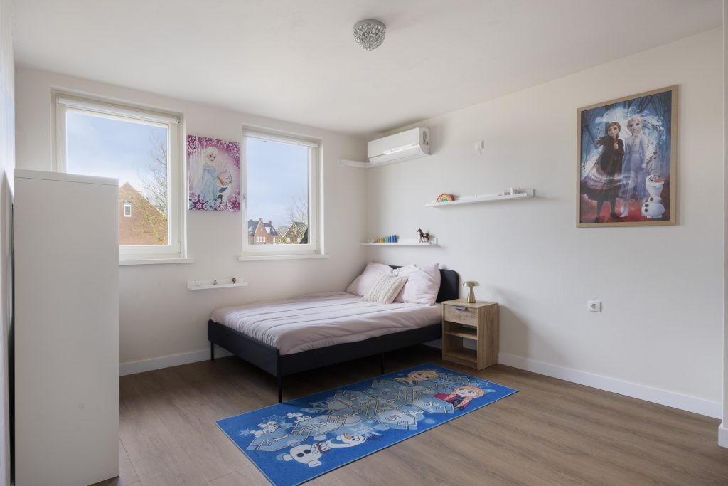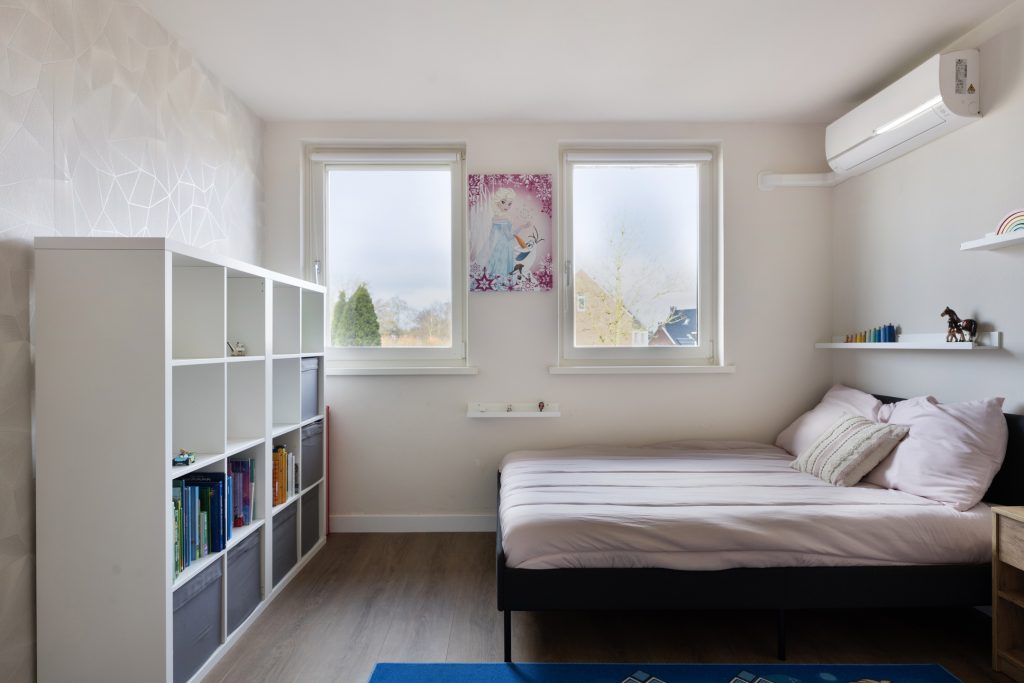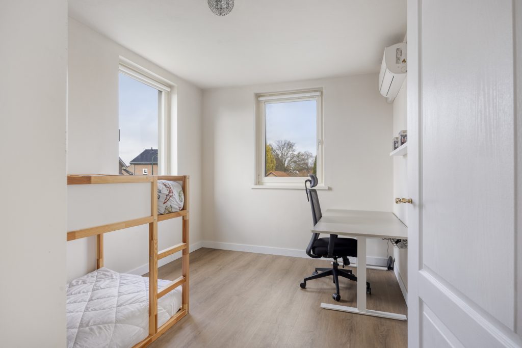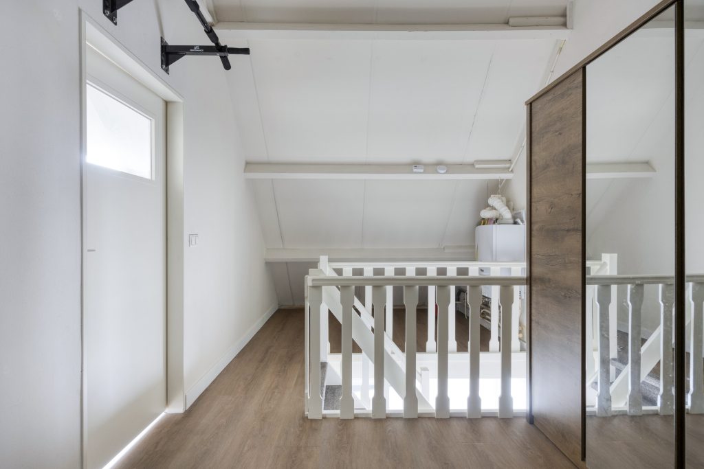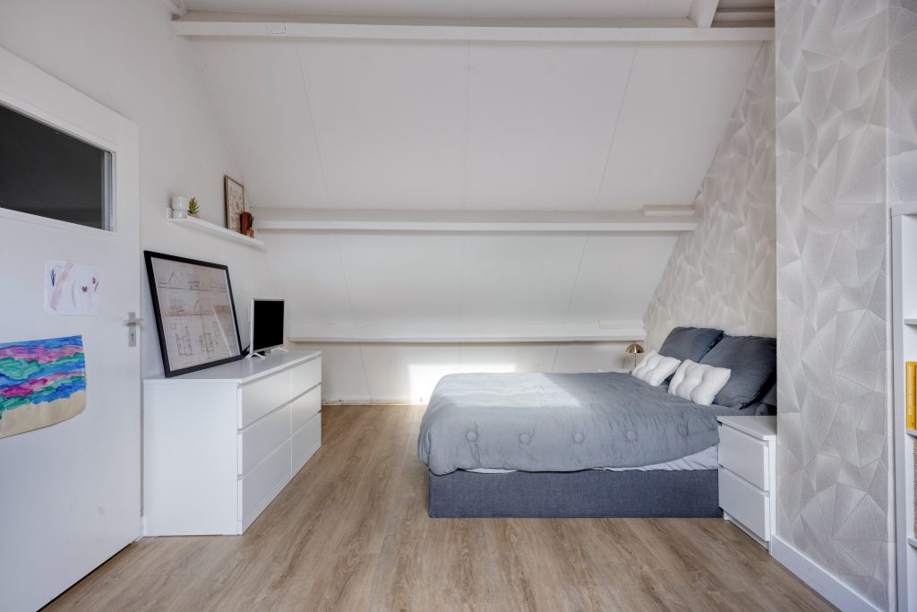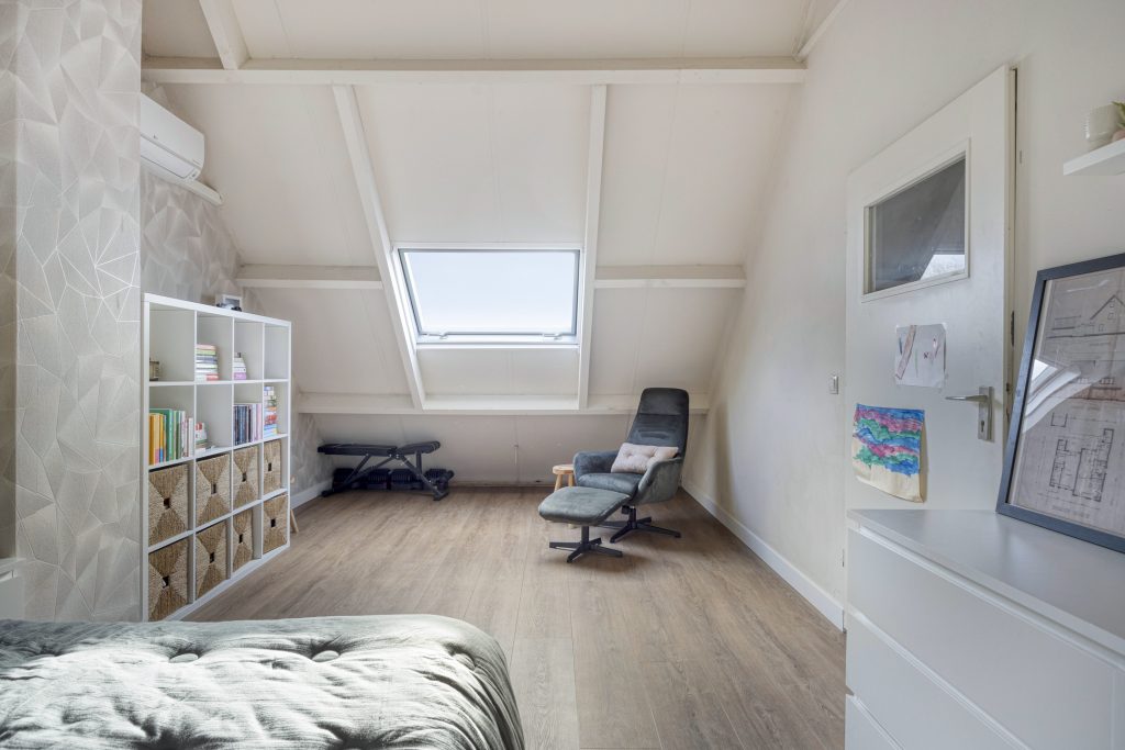 Een vaste trap geeft toegang tot de ruime voorzolder op de 2e verdieping. Hier zijn de cv-installatie en de omvormer voor de zonnepanelen geplaatst. Vervolgens is de ruime 4e slaapkamer toegankelijk. Ook deze kamer is voorzien van een pvc vloer, airco-unit en er is een dakvenster aanwezig.