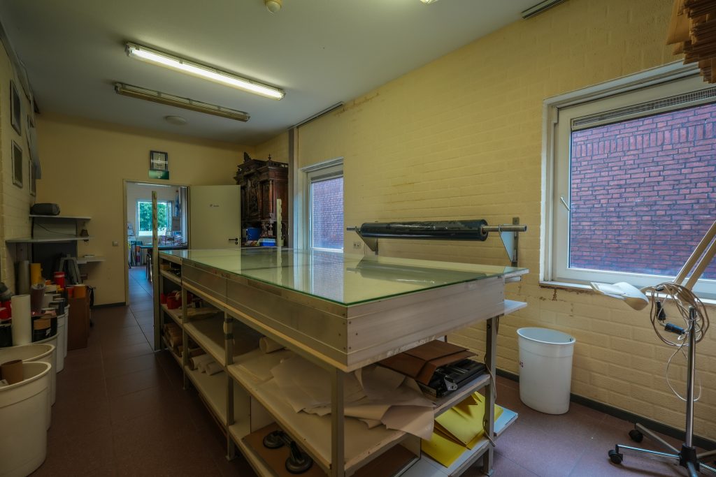 – Werkplaats/garage met kabelgootsysteem en krachtstroomvoorziening (10 aansluitingen, waarvan 8 in gebruik)