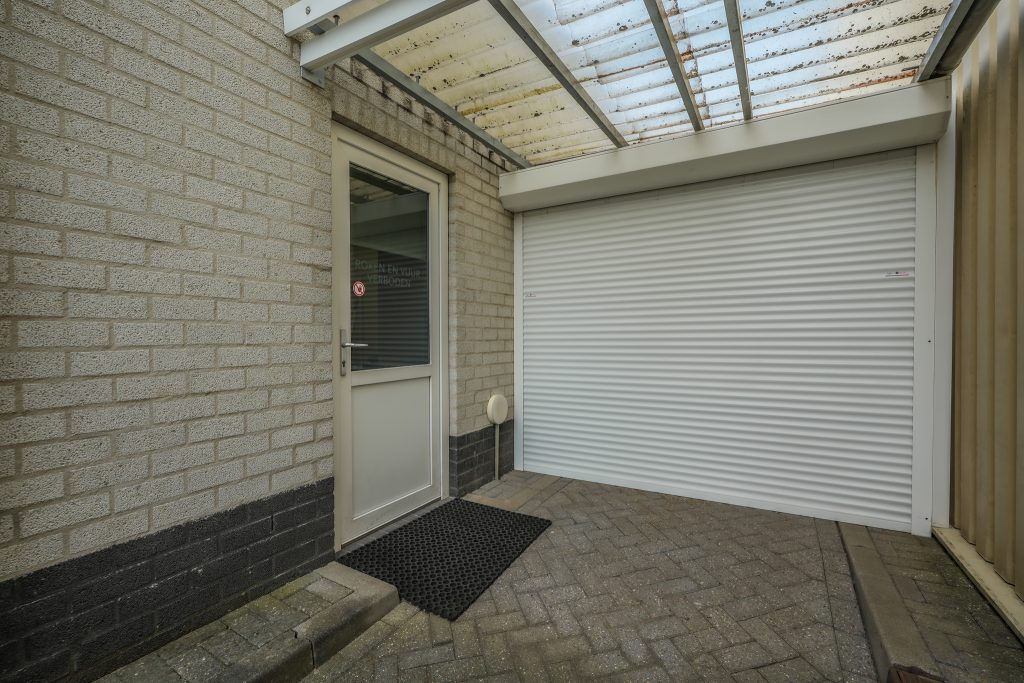 – Achterzijde: extra buitenterrein en overkapte opslagruimte
