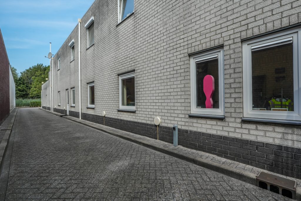 – Voorzijde: buitenterrein van ca. 112 m², volledig verhard en geschikt voor parkeren op eigen terrein