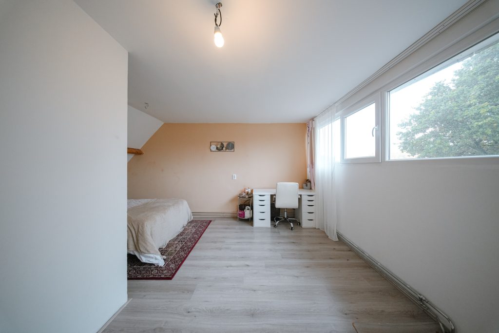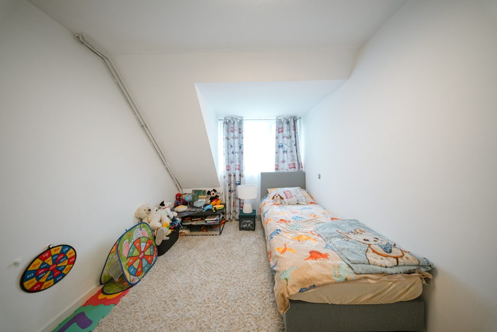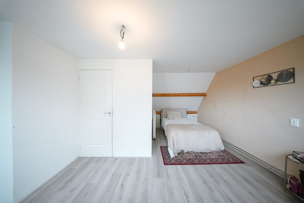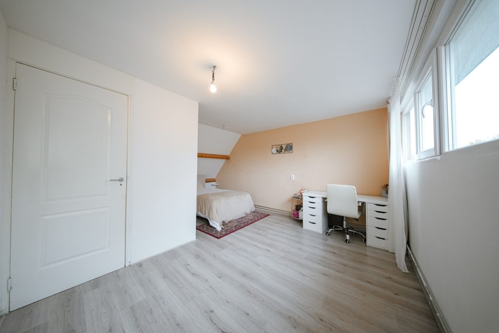De tweede verdieping is met een vaste trap bereikbaar en is zeer ruim en licht door de dakkapel dat later is aangebracht. Deze ruimte wordt nu gebruikt als 4e slaapkamer, maar kan ook prima gebruikt worden als werk / sport ruimte. De ruimte wordt verwarmd middels een radiator en achter de knieschotten is voor voldoende bergruimte gezorgd. Ook hier wordt de betonnen vloer bekleed met laminaat en zijn de wanden en plafond afgewerkt met stucwerk.