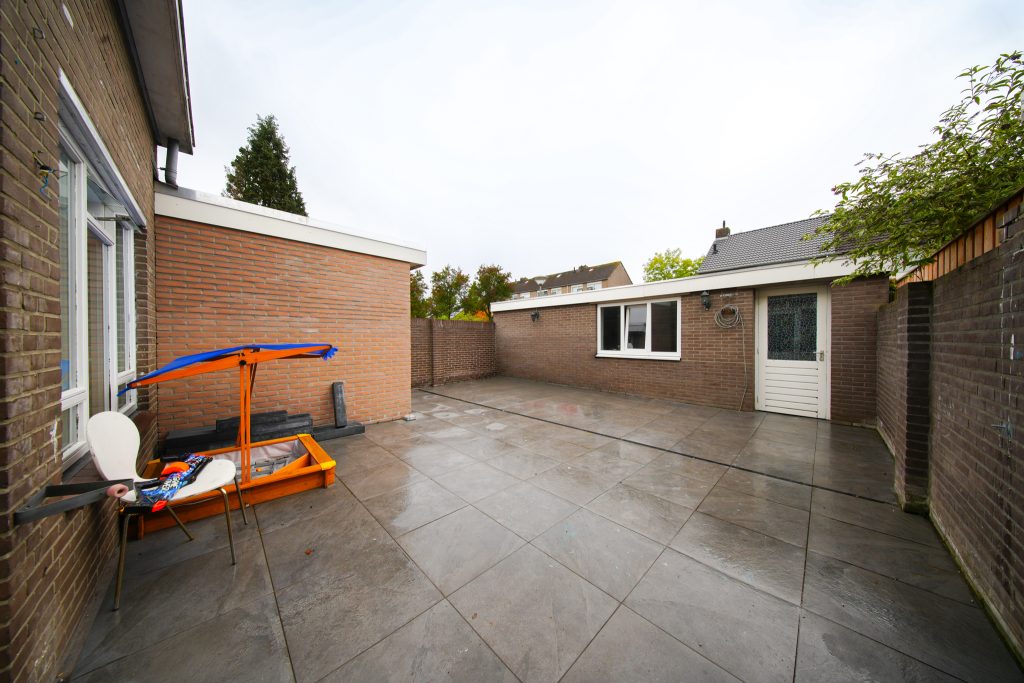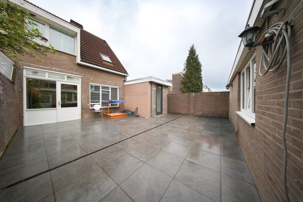 Via de woonkamer en keuken is de onderhoudsarme achtertuin bereikbaar. De betegelde achtertuin is volledig omheind met een gemetselde erfafscheiding. De tuin is gelegen op het oosten, waardoor er in de ochtend en middag volop zon aanwezig is.