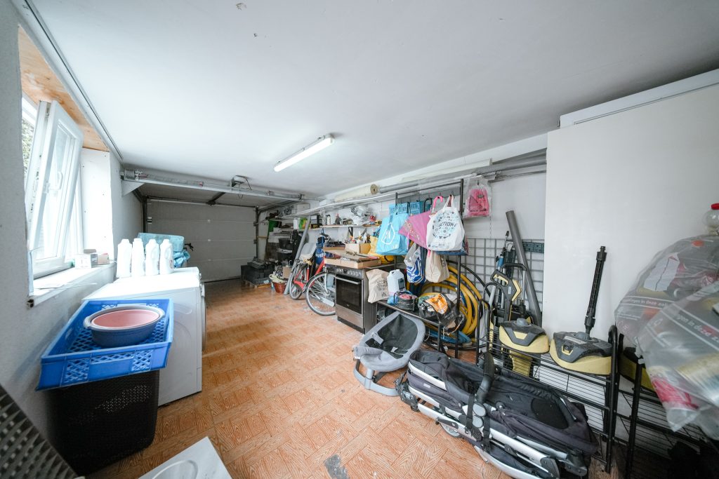 Achter in de tuin is separaat de ruime geïsoleerde garage te bereiken, deze is maar liefst 7.81m x 3.15m! De garage is ook van buitenaf bereikbaar met een elektrische overhead deur. De garage is voorzien van stroom en van raamkozijnen waardoor er veel lichtinval is. Ook is hier een aansluiting voor de was/droog combinatie.