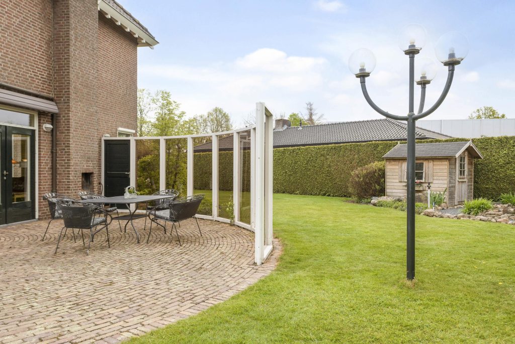 Optimale vrijheid De rondom gelegen tuin is met zorg aangelegd en biedt verschillende terrassen waar u in alle rust van de zon kunt genieten. De grote vrijstaande garage met bergzolder is een verlengstuk van uw werkgemak.