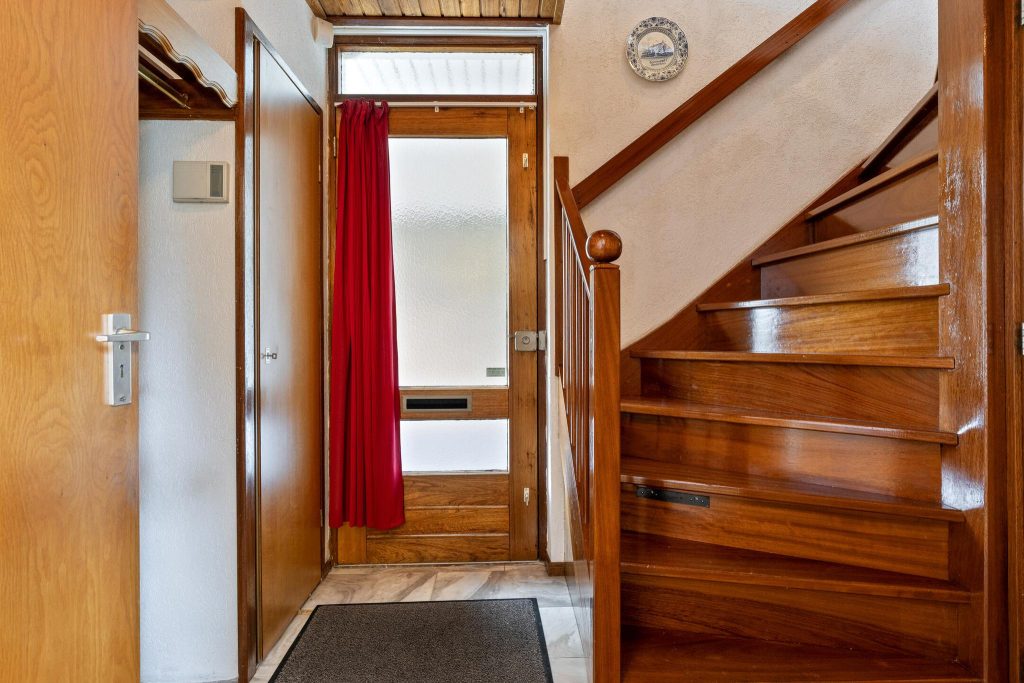 Via de voordeur bij de carport bereikt u de entree van de woning, welke toegang geeft tot alle vertrekken. Hier bevindt zich de meterkast, trapopgang naar de eerste verdieping en een toiletruimte met wandcloset en fonteintje.